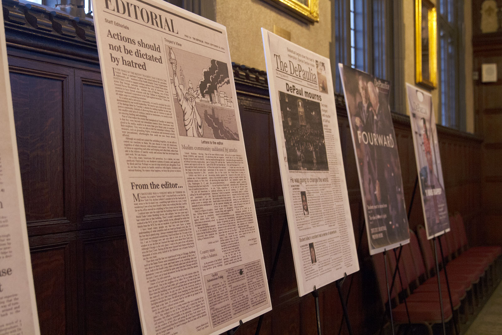 While The DePaulia began publishing volume 100 in the fall of 2015, the paper had not quite reached its 100th anniversary. Thanks to research provided by the university archivist, numbering inconsistencies over the years resulted in Volume 100 proceeding the 100th anniversary, which will actually occur in the year 2023. Although not quite a milestone, The DePaulia Volume 100 celebration provided a great opportunity to come together and celebrate the paper and its former staffers, in appreciation its history and impact with students and the community over the years. The celebration was inspired by the University Library’s recent completion of a digital archive of issues dating back to 1929. Visit the University Library’s Heritage Collection to view past issues of The DePaulia and its iterations.